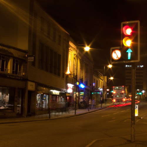 This is back from the start of summer term; I wanted a light painted shot of the word "PLAY" for Helicon, the uni arts magazine (the theme for the issue was 'play') so Alex and I went on a wander around Bristol. I was pleased with this shot in particular since it's got all three of the lights on, achieved with a long exposure.
